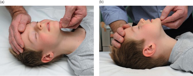 Şekil 1. Baş-çene pozisyonu. Dili öne çekerek hava yolunun açık tutulmasını sağlar.